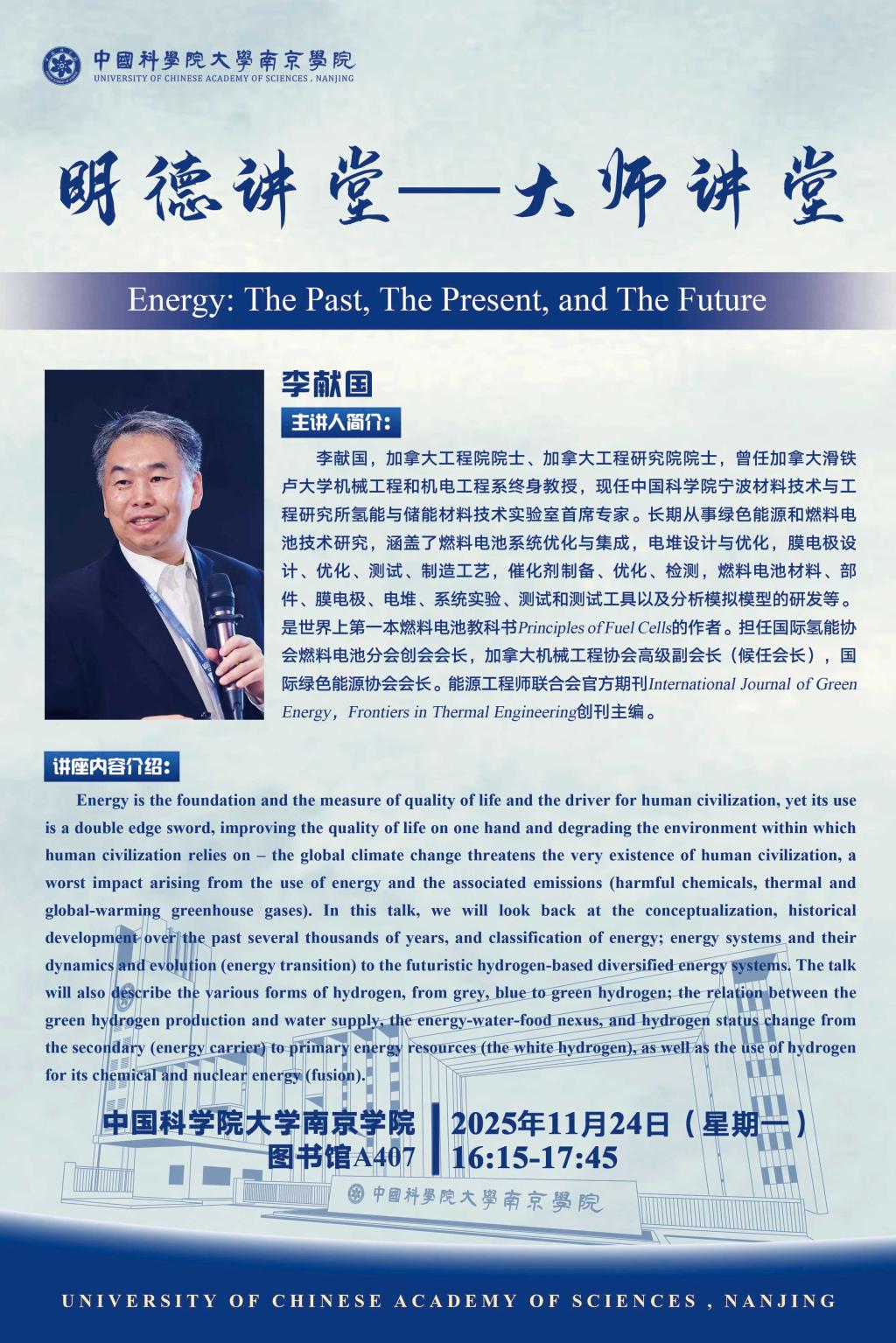 李献国,加拿大工程院院士、加拿大工程研究院院士,曾任加拿大滑铁卢大学机械工程和机电工程系终身教授,现任中国科学院宁波材料技术与工程研究所氢能与储能材料技术实验室首席专家。长期从事绿色能源和燃料电池技术研究,涵盖了燃料电池系统优化与集成,电堆设计与优化,膜电极设计、优化、测试、制造工艺,催化剂制备、优化、检测,燃料电池材料、部件、膜电极、电堆、系统实验、测试和测试工具以及分析模拟模型的研发等。是世界上第一本燃料电池教科书 Principles of Fuel Cells 的作者。担任国际氢能协会燃料电池分会创会会长,加拿大机械工程协会高级副会长(候任会长),国际绿色能源协会会长。能源工程师联合会官方期刊 International Journal of Green Energy,Frontiers in Thermal Engineering 创刊主编。